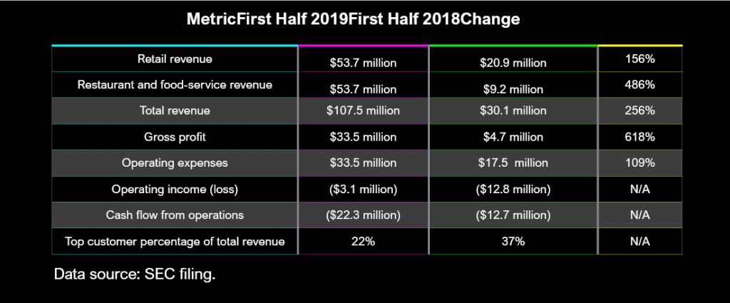 החברה דיווחה על צמיחה מרשימה בדו״ח הרבעוני השני שלה שפורסם בחודש שעבר, עם שינוי של 287% במכירות לעומת אותו רבעון בשנה שעברה, שינוי שהונע בעיקר מהפפולריות העולה שלה בקרב מסעדות ומפיצים אחרים שעלו ב483% לעומת אותה התקופה ב2018 – וכעת מהוות חצי מסך ההכנסות של החברה. את הצפי לסוף 2019 העלתה ההנהלה ל240 מיליון דולר, גבוה מהצפי הקודם של 210 מיליון דולר.