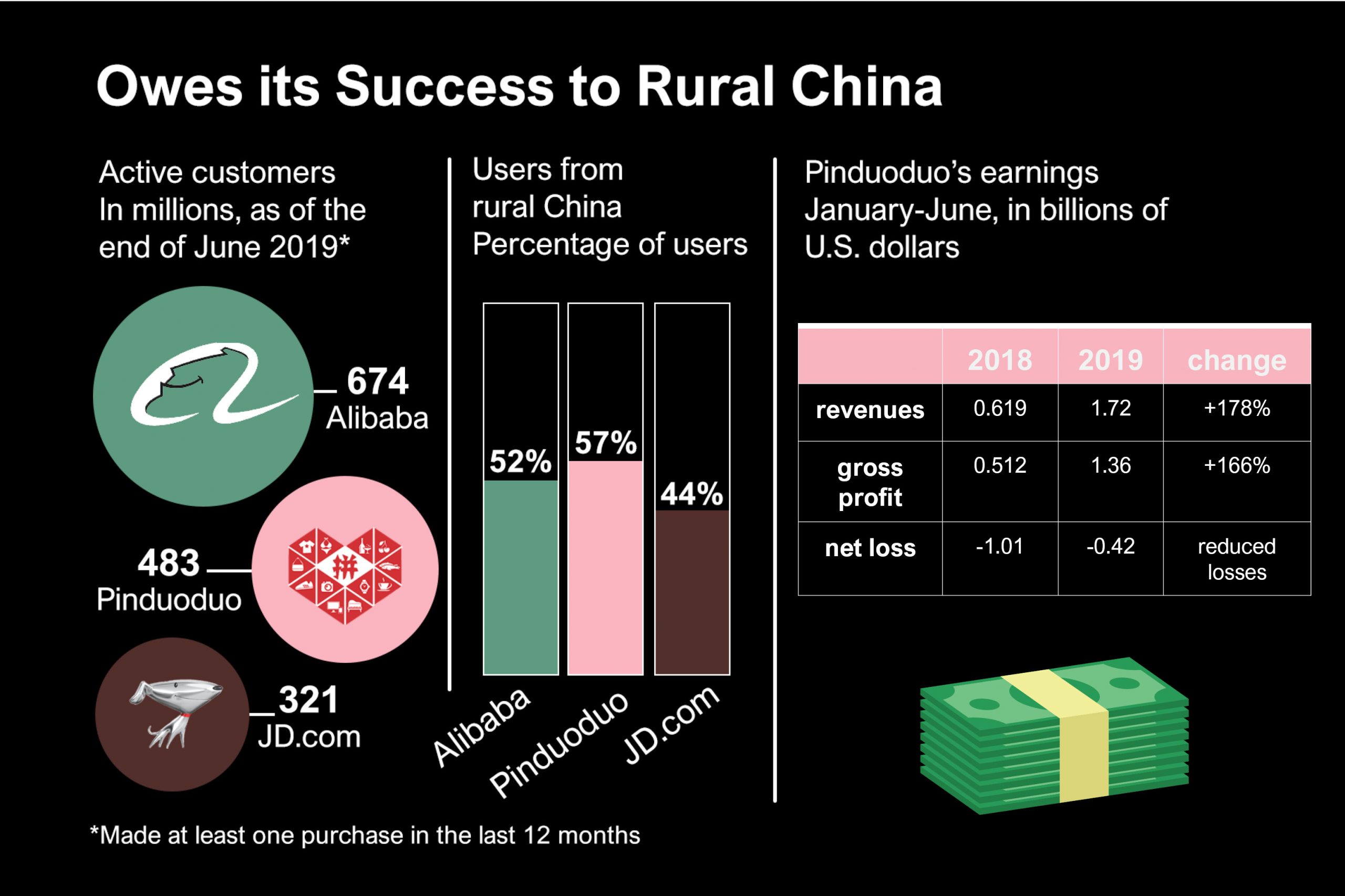 החברה שהוקמה לפני ארבע שנים, היא פלטפורמת ECOMMERCE עם טוויסט. בראשיתה פעלה בשיטה של קבוצות רכישה מהדור החדש, כשבמעבר להצעת מוצרים במסות גדולות במחיר מוזל, אפשרה למוכר להמשיך ולהוזיל את הקניה, ולהוריד את המחיר, באמצעות שיתוף הקנייה עם חבריו מהרשת החברתית. כשהחלה את פעילותה, התמקדה החברה באזורים וערים שמוגדרים Tier 2 אך עת-עת נכנסת גם לערים מרכזיות יותר בסין. הרציונל סביב החלטתה הראשונית נבע מסל המוצרים שהציעה. בשעתו, נמכרו בפלטפורמת החברה מוצרים מוזלים וגנארים שמאפיינים את סל הקניות של מעמד הנמוך בעלי ההכנסה הנמוכה. המייסד החברה התייחס לסל המוצרים בפלטפורמה כשילוב בי ענקית הקמעונאות Costco ודיסנילנד, כששורת חיפוש המוצרים באתר נמצאת בתחתית הדף והפיד הראשי של כל מבקר מורכב ממוצרים מקודמים מסוגים שונים. אפשר לומר, אם כך, שהחברה משלבת בתוכה גם חברות כמו Groupon, למוצרים (להבדיל מקניית שירותים וחוויות). הפלטפורמה דוגלת בחוויית משתמש יוצאת דופן, שממרכזת את הרשתות החברתיות ומשתמשת בקשריו כדי לגדול. המעבר לערים מרכזיות הוביל ליצירת תחרות ישירה עם Alibaba וJD שאף התייחסו לחברה בשיחות ועידה של הצגת הדוחות הכספיים. המומנטום של Pinduoduo רחוק מלהסתיים, אך אין ספק שהצמיחה מתחילה להראות האטה. עוד, הפסדיה ממשיכים לגדול כחלק מתהליך הפיתוח ובשל העובדה שכדי להבטיח את מקומה עליה להשקיע כדי להילחם במתחרות הגדולות, בין אם בשדרוג פנימי ובין אם בסבסוד מוצרים כדי לשמור על מחיר נמוך.
