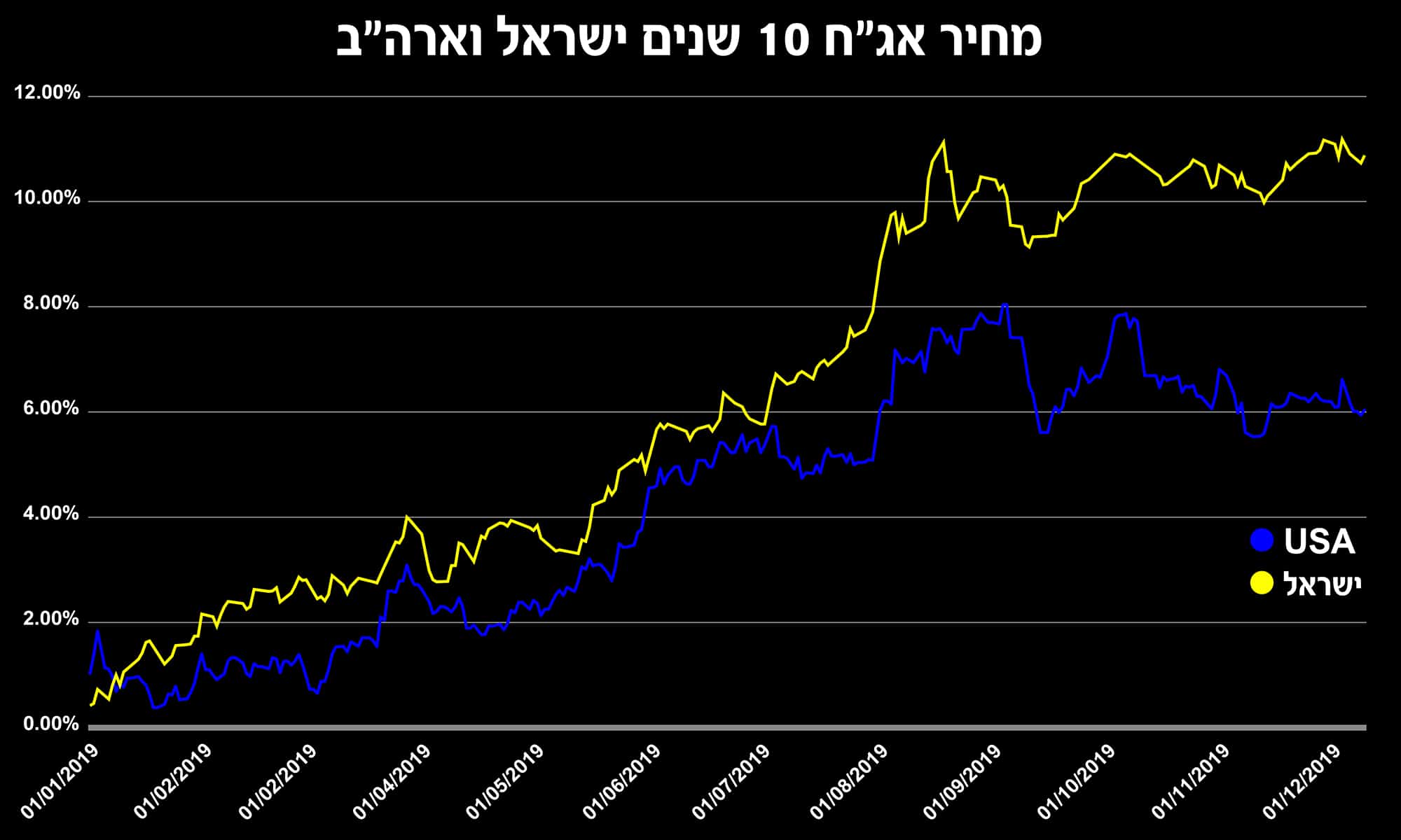 ראו גרף של אגרת החוב הישראלית והאמריקאית לעשר שנים מתחילת השנה. חשוב להזכיר לכולם שאגרת חוב אינה מניה! היא לא אמורה לעלות או לרדת בשעורים כאלו אם בכלל.
