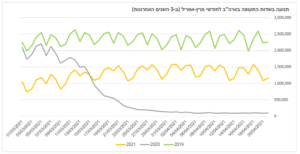 התנועה בשדות התעופה בחודשים מרץ עד אפריל (בשלוש השנים האחרונות)