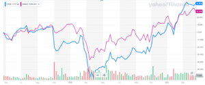 מניית בואינג עדיין נסחרת בכ- 40% פחות ממחירה לפני הקורונה, וכפי שניתן לראות בגרף, היא מפגרת אחר השינוי של מדד JETS (בואינג – בוורוד) ולפיכך, ייתכן בהחלט שיש פה עדיין הזדמנות טובה וורודה למשקיעים.