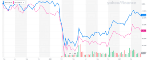 בענף המלונאות, חברות Expedia (NASDAQ:EXPE) וBooking (NASDAQ:BKNG) התרסקו אמנם עם תחילת הקורונה, אבל מאז המחירים שלהן טיפסו מעלה מעלה אל מעבר למחיר לפני פרוץ המגיפה.