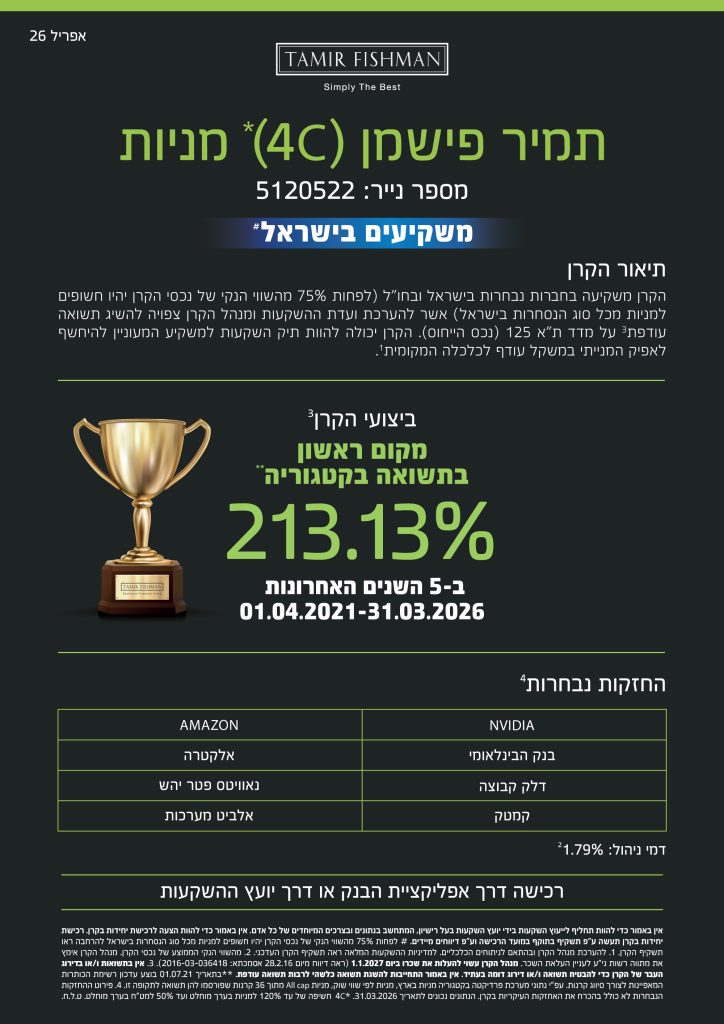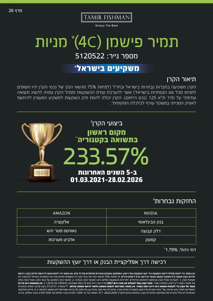הגיע הזמן לעשות משהו עם הכסף שלך באיזה מוצר אתה מתעניין?ניהול תיקיםקרנות נאמנותמוצרים פנסיונייםמוצרי חסכוןאחר אני מאשר\ת קבלת דיוור Δ